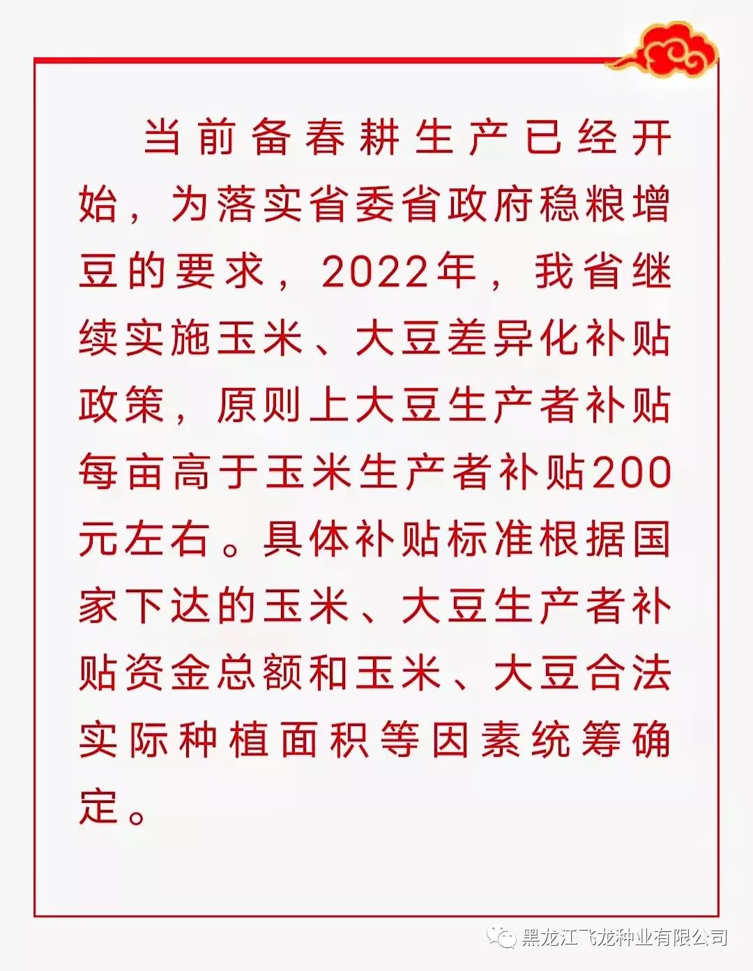 黑龍江省釋放2022年玉米和大豆生產(chǎn)者補(bǔ)貼政策信號